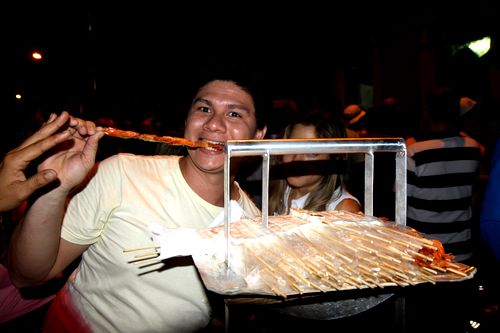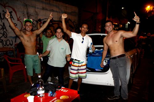 Вийшовши о пів на дванадцяту ночі (в Україні якраз було пів на сьому, оскільки Манаус і Куяба живуть на годину раніше за решту міст-господарів турніру), побачив, що фанівські гуляння якраз у розпалі. Англійців, як завжди найбільше. Розвішані прапори із написами міст, багато пива і гучні співи – усе це британці. Манаусці додали своєї родзинки, продаючи приїжджим до пива шашлики з сиром та креветками по 3 реали (15 гривень), а ще просто на вулиці пропонували покурити сигари. Всім було весело: жодної агресії, хоч поруч бразильські молодики в італійських футболках крутили гімн Італії, розмістивши потужні динаміки у багажнику седана, а трохи далі народ гуляв у кольорах збірної Бразилії. Тому у поліції, що чергувала поруч із вболівальниками, допоки ті не розійшлися, роботи цієї ночі фактично не було.