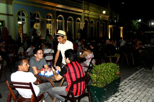 Однак Манаус запам’ятається зовсім не цим. Історичний центр міста – доволі невеликий, але має особливість, яка різнить його від європейських пам‘яток архітектури. Будівлі 19-го століття, збудовані під час каучукового буму, розмальовано у яскраві кольори, і це справляє доволі незвичне враження. Такого ви точно не побачите у Старому світу: поруч із яскравими бароковими фасадами, люди на лавочках балакають, дивлячись на великому екрані як співають самбу. Поруч численна кількість столиків просто на вулиці у закладі під назвою «African House«. На площі, біля статуї Колумбу, о 19-ій співають троє оперних співаків, після них за справу береться скрипаль. А все тому, що згадана площа одразу під «Тетром Амазонас» – другою після Ріо-де-Жанейро оперою Бразилії. Будівля – знову ж таки, яскраво-червона із блакитним куполом. Але особливо вражаюче опера виглядає всередині: дорого оздоблені балкони і розписана стеля навіюють аналогію з львівською та одеською Операми. Потрапити всередину «Опера-хаус» мені вдалося через щасливий випадок: напередодні гри Посольство Італії в Бразилії організувало безкоштовний концерт симфонічного оркестру «Ансамбль Страдіварі», а також виступ чотирьох оперних виконавців з Неаполю. Відвідати концерт могли усі бажаючі: квитки роздавали просто перед театром. Почувши це, ми із Ву стали у довжелезну чергу (до слова бразильці вміють стояти у черзі, поважаючи її правила і не «лізучи» один поперед одного), яка минула дуже швидко. В результаті, нам дісталися місця у сьомому ряді партеру! Такого точно ніхто не сподівався. Оскільки італійська амбасада відкрила двері Опери для всіх, спостерігалося контрастне поєднання вечірнього одягу і шортів з сандалями. Але чого дивуватися: це ж футбольний Кубок світу і поєднання футболу з мистецтвом! Дві частини концерту – симфонічна і оперна, що тривали більше двох годин, зробили вечір незабутнім. Тріумф італійського мистецтва напередодні матчу став гарним провісником їхнього тріумфу через день. Якщо співати оперу щоразу перед іграми на мундіалі, можна наздогнати бразильців за числом світових титулів.