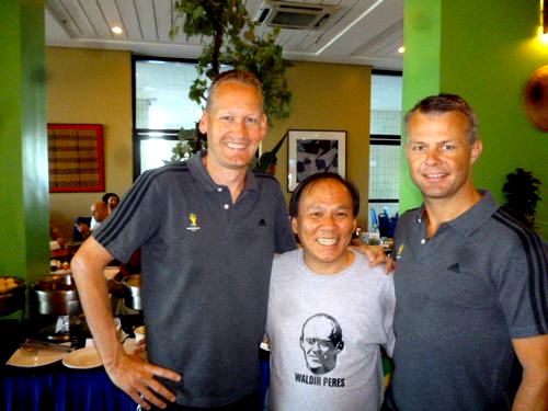 Готель «Парк сьютс Манаус» носить статус офіційного готелю, а це означає, що у ньому можна зустріти офіційних осіб матчу. Спустившись на сніданок, обачив у ресторані голландську бригаду арбітрів на чолі із Бйорном Куйперсом. Із ними ж одразу захотів сфотографуватися мій щвейцарсько-в‘єтнамський приятель Себастья Ву. Ані я (як фотограф), ані Куйперс з асистентом йому у цьому не відмовили. Під час «після сніданкового відпочинку» голландців перекинувся с Куйперсом кількома словами. Голландець з усмішкою сказав, що з журналістами зараз йому забороняє розмовляти ФІФА. На моє зауваження, що це не зовсім гуманно, Бйорн усміхнувся і відповів, що у Нідерландах вони відкрито спілкуються з медіа і проблем немає, а у ФІФА, мовляв, такі правила. Прогноз на фінал рефері не дав, сказавши, що і цього не дозволяють, відтак я побажав йому самому дійти до фіналу, водночас зазначивши, що це не означає, що я не бажаю успішного виступу його збірній. На тому й розійшлися: «Have a nice day and match!».