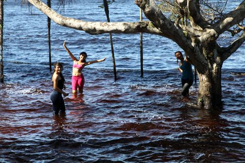 Океан за три з половиною тисячі кілометрів звідси, однак коли вода сягає горизонту, важко уявити, що це так далеко звідси. Залишивши місце зустрічі, ми трохи занурилися в тропічні ліси. Люди, котрі живуть на воді, мають тут невибагливі будинки, вікон в яких найчастіше немає. А для чого вони потрібні? Тут же завжди тепло. Місцеве господарство – це переважно вилов риби (її тут багато різної), але вирощують також овочі. А фрукти і так ростуть. Зокрема, ананаси у Манаусі відчутно солодші за ті, що можна скуштувати у решті бразильських штатів. Дітей возять до школи човнами – навчальний заклад також розміщено на воді, а де ж тут взятися суші!