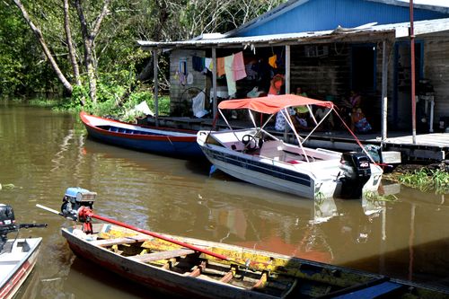 Ще один спосіб заробити на життя – туризм. Індіанці облаштували на воді ресторани і сувенірні базарчики, на які туристи заїжджають під час своїх екскурсій. Готують смачно і чисто (Дебора запевнила, що овочі й фрукти миють мінеральною водою), а сувеніри справді оригінальні. Ну де вище знайдете ніж з ручкою із головою піраньї, або зброю тубільців – трубку з якою видуваються отруєні стріли. Стріли, звісно, не отруєні, але гострі.