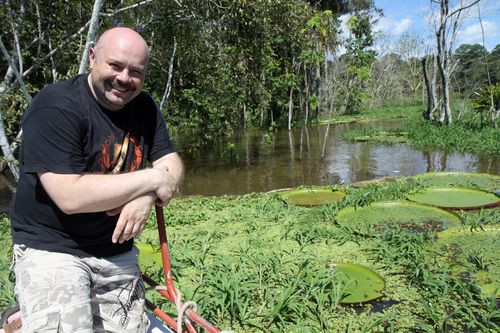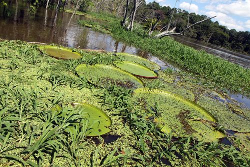 На зворотньому шляху Дебора також запропонувала нам подивитися на гігантські амазонські лілії - Victoria Amazonica. Вікторія амазонська – це найбільша квіткова рослина на планеті, занесена до Книги рекордів Гіннеса. Діаметр її листа може досягати двох метрів, а молода міцна рослина може витримувати вагу до 10 кілограмів! За твердженням Дебори, на цю величезну зелену «тарелю» без ризику можна посадовити маленьку дитину. Названа, до речі, лілія на честь молодої королеви Великої Британії Вікторії, яка у 30-х роках 19-го століття зійшла на престол. Саме тоді Роберт Герман Шомбурк, досліджуючи ліси Амазонії, виявив дивовижну рослину.