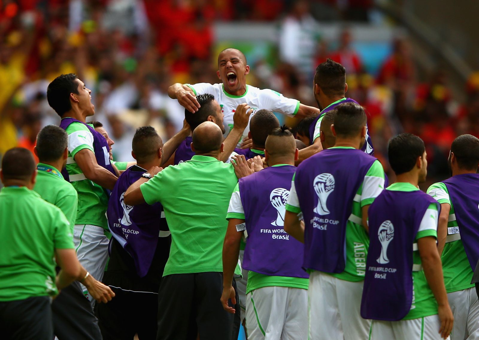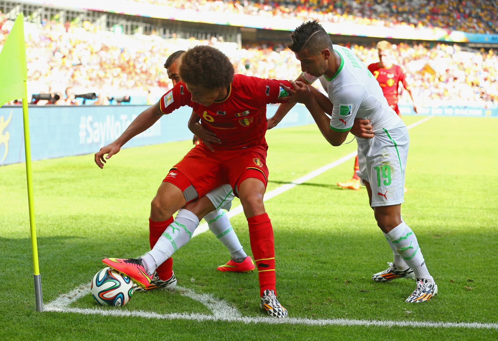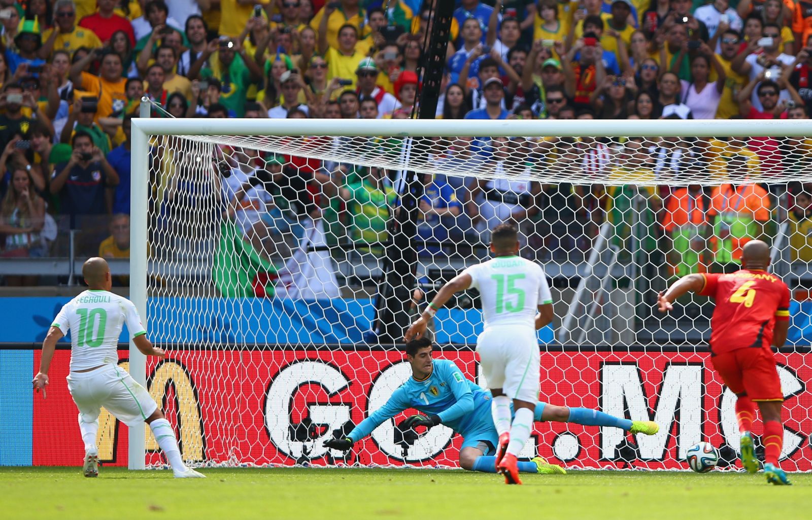Алжир грамотно занял место на своей половине поля, защищаясь девятью игроками и начиная свои контратаки едва ли не от собственной штрафной. Эта тактика принесла свои плоды еще на 24-й минуте встречи, когда Ян Вертонген предпочел не возвращаться на максимальной скорости в собственную штрафную и упустил Фегули, которого пришлось останавливать руками. Мексиканский арбитр встречи пожалел хорошего знакомого днепропетровского «Днепра» и решил наградить бельгийца всего лишь желтой карточкой, а сам «виновник» пенальти безукоризненно исполнил приговор.