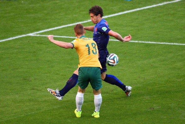 Голландцы вскоре могли снова выйти вперед, но Флаар после стандарта пробил головой немного неточно. У австралийцев, впрочем, были более яркие моменты до перерыва. Сначала Марк Брешиано, еще один австралийский ветеран, получил прекрасный пас справа, но пробил совсем не так здорово, как Кэхилл – послал мяч над перекладиной. Затем после стандарта в центре штрафной с мячом встретился защитник Спиранович, но техники для толкового удара ему не хватило.