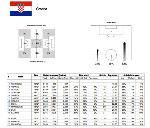 Если верить официальному пресс-киту от ФИФА после матча Хорватия – Камерун, то максимальная скорость Дарио зафиксирована на отметке 32,98 км/ч! И это в 32 года!