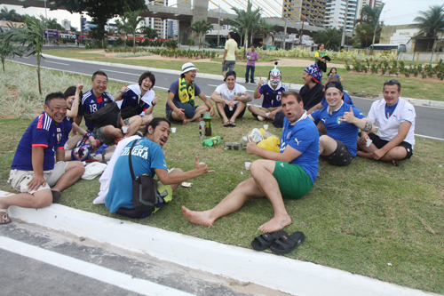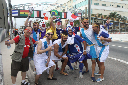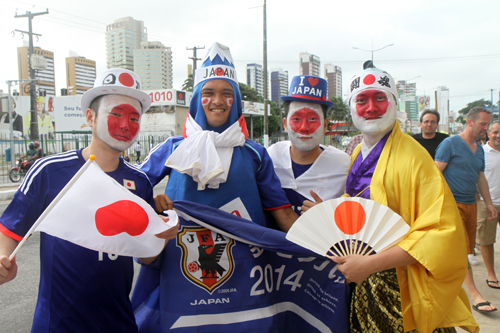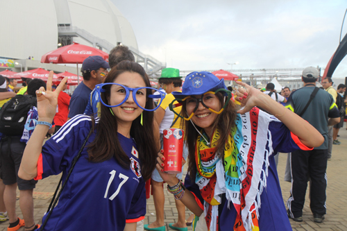 Ще до містка вболівальники обох країн продовжили естафету демонстрації власного креативу, що на турнірі триває від найпершого матчу. Японці жваво використовували свої традиційні персонажі та географію: гейші і самураї (один навіть влаштував мені харакірі – на жаль, я цього не встиг сфотографуватиJ), вулкан Фудзіяма і дракон.
