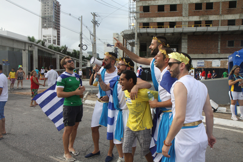 Промчавши з вітерцем із зображенням Кафу, натрапив на компанію італійців та японців, які сиділи на невеличкому трав‘яному острівці, просто біля асфальту. Побачивши, що їх знімають, почали дружно скандувати: «Піту!». Виявилося, що «Піту» із креветкою на етикетці – бразильський ром, що виробляється у сусідньому штаті Пернамбуку (столиця – Ресіфі). Після «Піту» веселе життя фанатів стало просто барвистим.