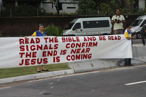 Біля самісінького входу на стадіон стояли три релігійних протестанти, котрі на плакатах із зображенням американського прапора, закликали всіх читати Біблію, щоби знайти знаки кінця світу. В півоберта до мітингувальників спокійно розмовляли про своє п‘ятеро полісменів на мотоциклах. Маніфестантів ніхто не зачіпав, загалом нікого ця ситуація не напружували – всі йшли на футбол.