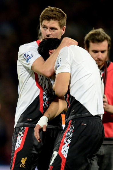 Соперничество дружбе не помеха. Суарес утешает Джеррарда