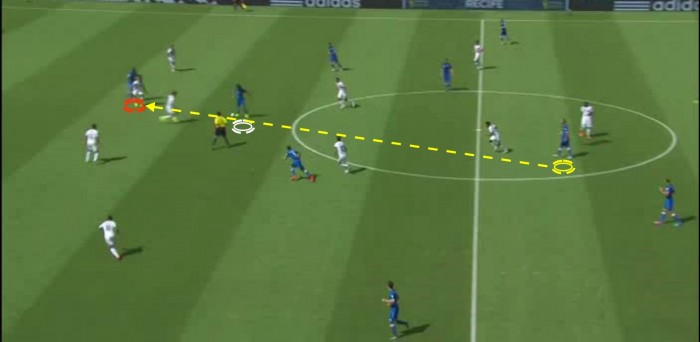 Диас и Техеда совершили по 4 отбора, в то время как Де Росси 2, а Пирло – всего один. В результате тройка (а зачастую и пара ) костариканцев оказывалась победителем в единоборствах в центре поля, а на помощь первой линии обороны Италии в центр поля постоянно вынужден был спускаться Маркизио. В результате он и совершил наибольшее число отборов в центральной линии (3) . Безусловно, полузащитник «Ювентуса» является универсальным игроком, могущим отбирать мяч. Однако в текущем построении Италии, где уже имелось 3 игрока центра, Маркизио наряду с Кандревой был призван играть роль скорее атакующего хавбека, нежели центрального полузащитника. На деле же все обстояло именно так, и изначально задуманные Пранделли 4-3-3 по ходу матча регулярно превращались в 4-4-2.