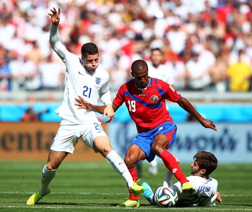 Вообще, Коста-Рика выглядела в эти минуты гораздо уверенней, чем англичане. На 23-й минуте Борхес мог открыть счет, но после его удара и отчаянной попытки Фостера спасти свою команду от неминуемого гола, мяч попал в перекладину. Очередной ответ Англии создал все тот же Старридж, после удара которого с линии вратарской на 35-й минуте встречи мяч пошел над перекладиной.