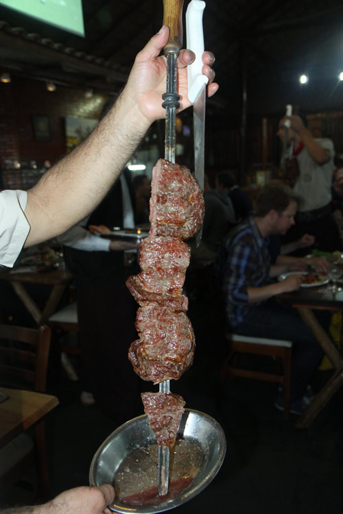 Основне м'ясо, яке подають – це м'ясо бика. Туша цього «звіра», зображена на підкладці під кожну тарілку, розділена на частинки, які по черзі підносять офіціанти. Ваша справа – їсти і прийняти рішення, коли вже досить, бо інакше буде зле вашому шлунку.