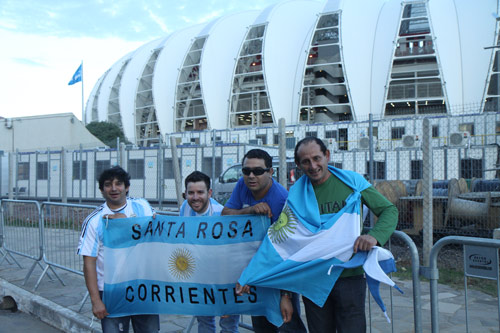 Штат «Ріу-Гранде-ду-Сул» межує з Аргентиною і Уругваєм. Доїхати до Порту-Алегрі на машині аргентинцеві жодних проблем не становить. Віз не потрібно, а до Буенос-Айреса якихось тисячу чотириста кілометрів. Тому, за непідтвердженими даними, на матч Аргентина-Нігерія прибуло до 80 тисяч аргентинців! Це при тому, що місць на стадіоні - менше 52 тисяч. Не дивно, що учора біля стадіону ходили цілі групи «архентіносів», які запитували про зайвий квиточок.