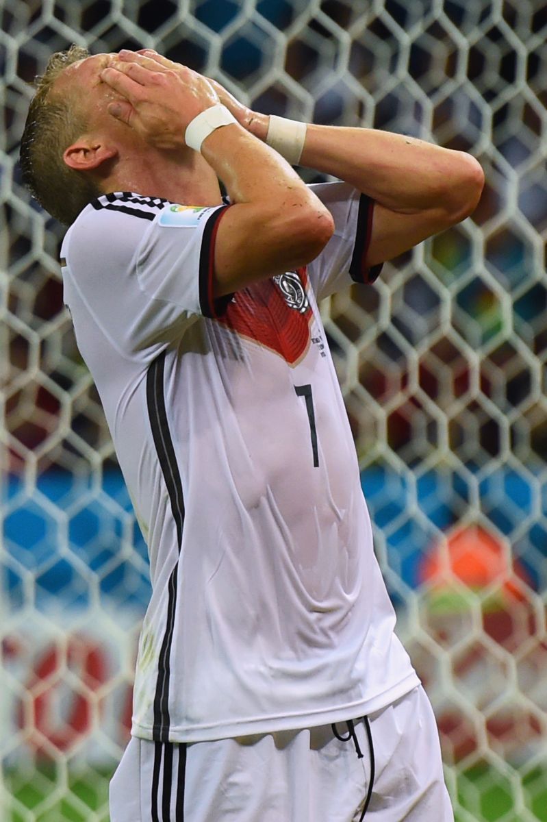 И все же Бундестим продолжала давить прессом на ворота Раиса. На 80-й минуте после навеса справа Мюллер головой расстреливал ворота, голкипер отбил мяч на Шюррле, удар которого на линии ворот принял на себя Белкалем. Через минуту Мюллер вновь вынужден был хвататься за голову – до ворот было метров 10, но мяч после его удара прокатился рядом со штангой.