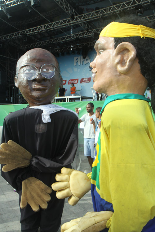 Разом з ними розважали публіку й велетенські ляльки: серед фігур-пародій в етнічних костюмах були легенди бразильського футболу Рональдо, Рональдіньо, а також молодий «стар» - Неймар.