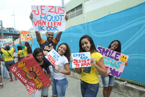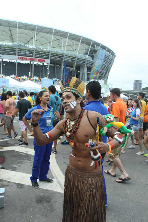 Основне скупчення людей – в історичному районі Пелорінью, звідки до стадіону – 20 хвилин пішки. На підході до арени «Фонте Нова» - знову барабанний бій і своєрідний «перфоменс» під гаслом «Jesus loves you» (Ісус тебе любить).