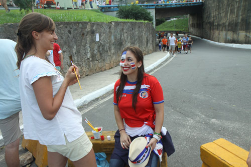 Неподалік така ж майстриня розмальовує вболівальників у кольори Коста-Ріки, а діти з табличками «Ісус любить Коста-Ріку», вірять, що магія коста-риканських чаклунів – «брухас» – продовжиться. А що, діти були зовсім недалекі від істини.