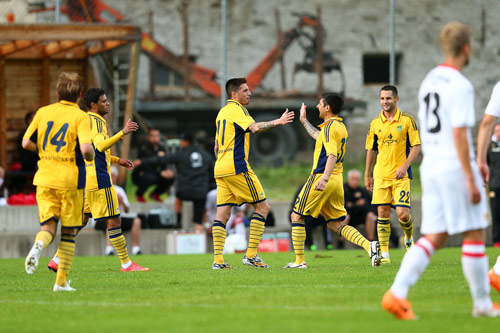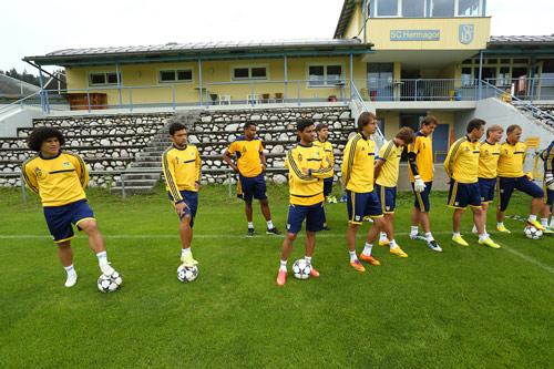 За почти две недели пребывания в Австрии «желто-синие» планируют проводить не только ежедневные двухразовые тренировки, но и четыре товарищеских поединка. В общем-то, уже в первый день харьковских футболистов ожидало и то, и другое. После завтрака в отеле команда отправилась в соседний городок Хермагор, что в 12-ти минутах езды от места дислокации, на стадионе которого и провела свое первое занятие. Длилось оно недолго, так как вечером ребят ожидала и первая игра, а значит надо было хорошенько разогреться, почувствовать, что называется, тонус в мышцах, и просто получить удовольствие от любимого дела.