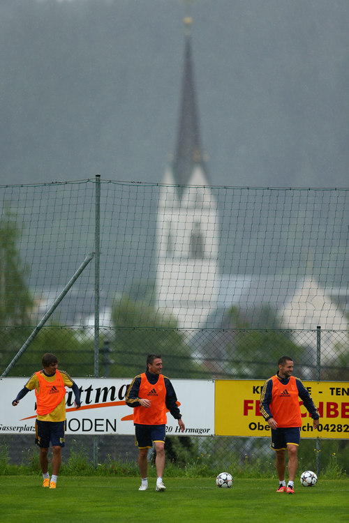 В среду подопечные Игоря Рахаева провели очередные две тренировки. Несмотря на то, что над Каринтией в среду весь день периодически лил дождь, плодотворной работе это отнюдь не помешало. Утреннее занятие прошло без видимых помех небесной канцелярии, второе - практически под проливным дождем. Однако, сей факт настроение футболистам и их наставникам испортить не смог - все работали с удовольствием.