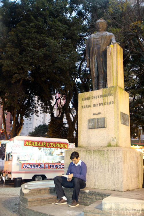 На площі України є також пам’ятник Тарасу Шевченку, під яким я зафіксував молодого чоловіка, який читав, напевне, вірші Великого Кобзаря (я не став запитувати, аби не зіпсувати своє припущення :). Що ж іще йому читати під таким монументом?!).