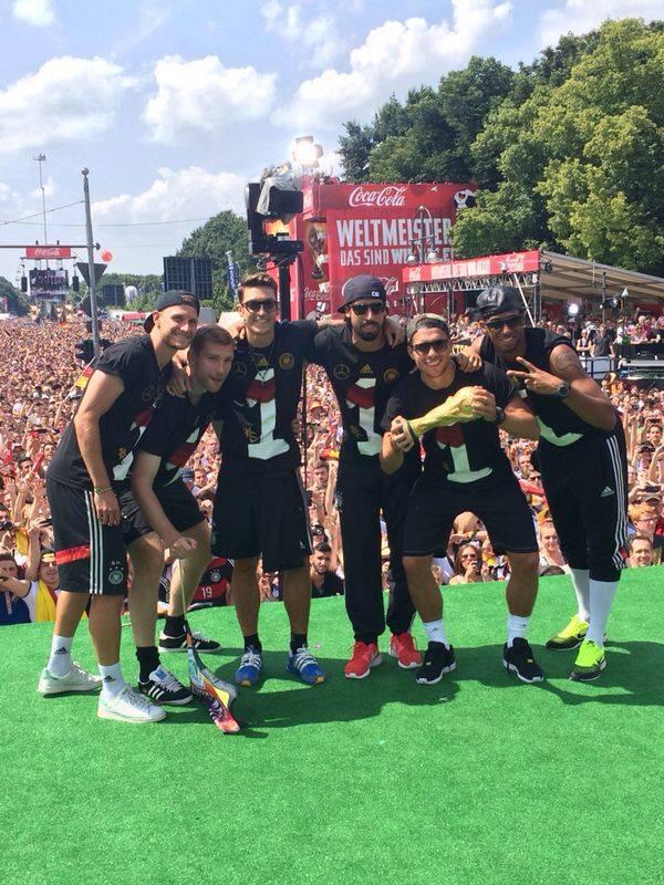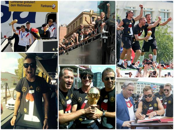 Чемпионы мира - сборная Германии - вернулись на родину, где их встретили сотни тысяч болельщиков. По предварительным подсчетам, более 500 тысяч людей собралось в Берлине, чтобы поприветствовать четырехкратных чемпионов мира!