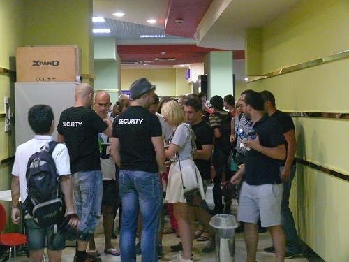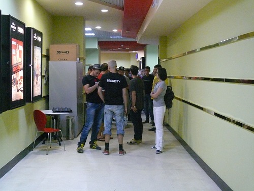 Проскальзываем в зал мимо фанатов, ожидающих начало трансляции, которых отделяет от заветной цели веселая, но внимательная охрана.