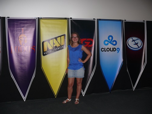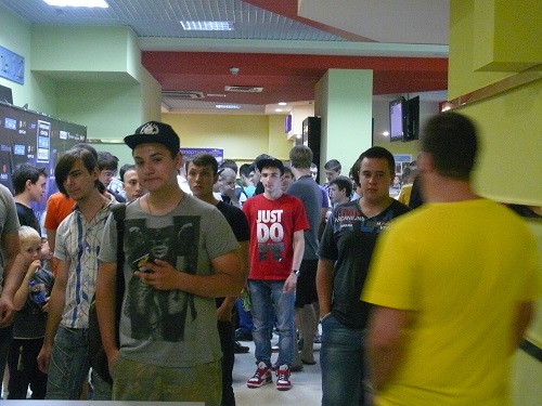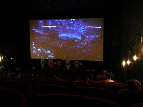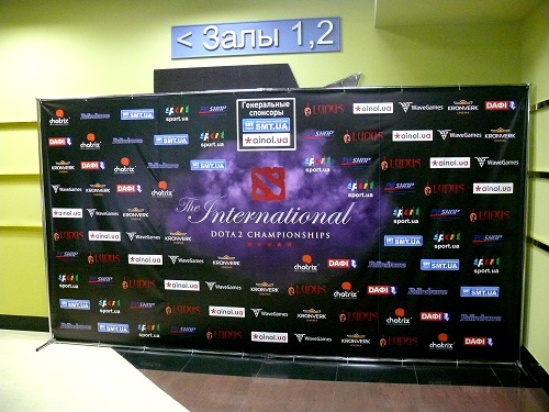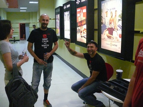 Первое, что мы увидели при входе в киноцентр, был замечательный рекламный баннер, возле которого постоянно фотографировались болельщики, томящиеся в предвкушении эпичных битв на виртуальной арене.