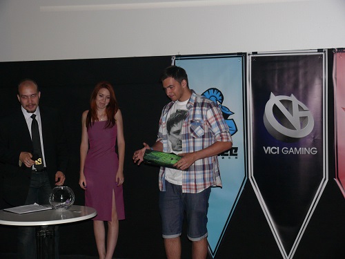Организаторы пытаются несколько разрядить обстановку, вручив приз победителю конкурса. Хоть парень и сам не рад, что получил приз за проигрыш любимой команды, но с благодарностью принимает из рук ведущих ценную игровую поверхность.