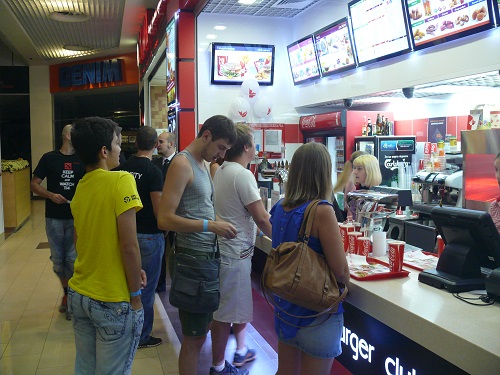 Часть болельщиков расходится по домам, расстроенная поражением Na`Vi. Другие же отправляются подкрепиться в закусочную "Burger Club", которая работала всю ночь напролёт специально для фанатов Dota 2.