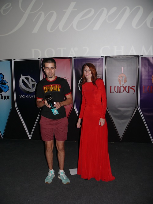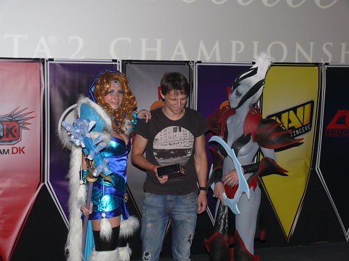 Но на этом праздник для дотеров не заканчивается. Пока идет церемония чествования победителей, фанаты продолжают получать призы: фирменную футболку Natus Vincere, прогеймерскую мышь SteelSeries Kana Dota 2 Edition и планшет от спонсорской компании Ainol.