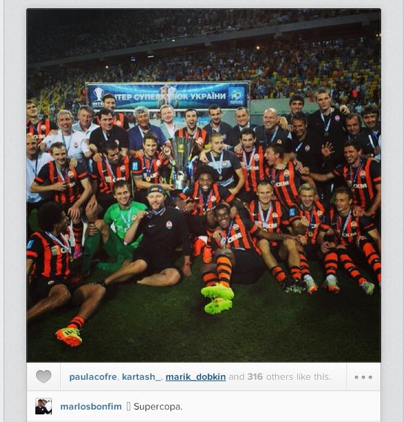 Капитан «Шахтера» Дарио Срна написал, что победа в этом матче для Донецка и для Донбасса, многие просто радовались. Для Марлоса этот трофей стал первым в Украине. Тайсон же благодарил Бога за помощь и благословление. А Луис Адриано скромно подписав фото «Чемпион» показал Суперкубок и приз лучшему бомбариду чемпионата Украины за минувший сезон!