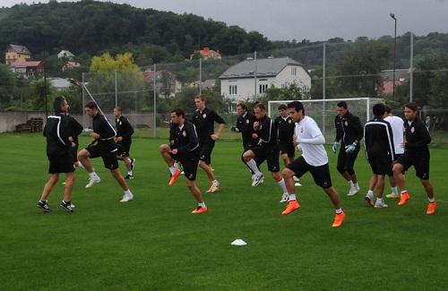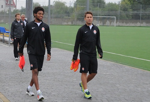 Занятие состоялось на тренировочном комплексе в Винниках, неподалеку от Львова, куда «Шахтер» добирался порядка тридцати минут. Чемпионы Украины тренировались под дождем – там довольно прохладная и сырая погода.