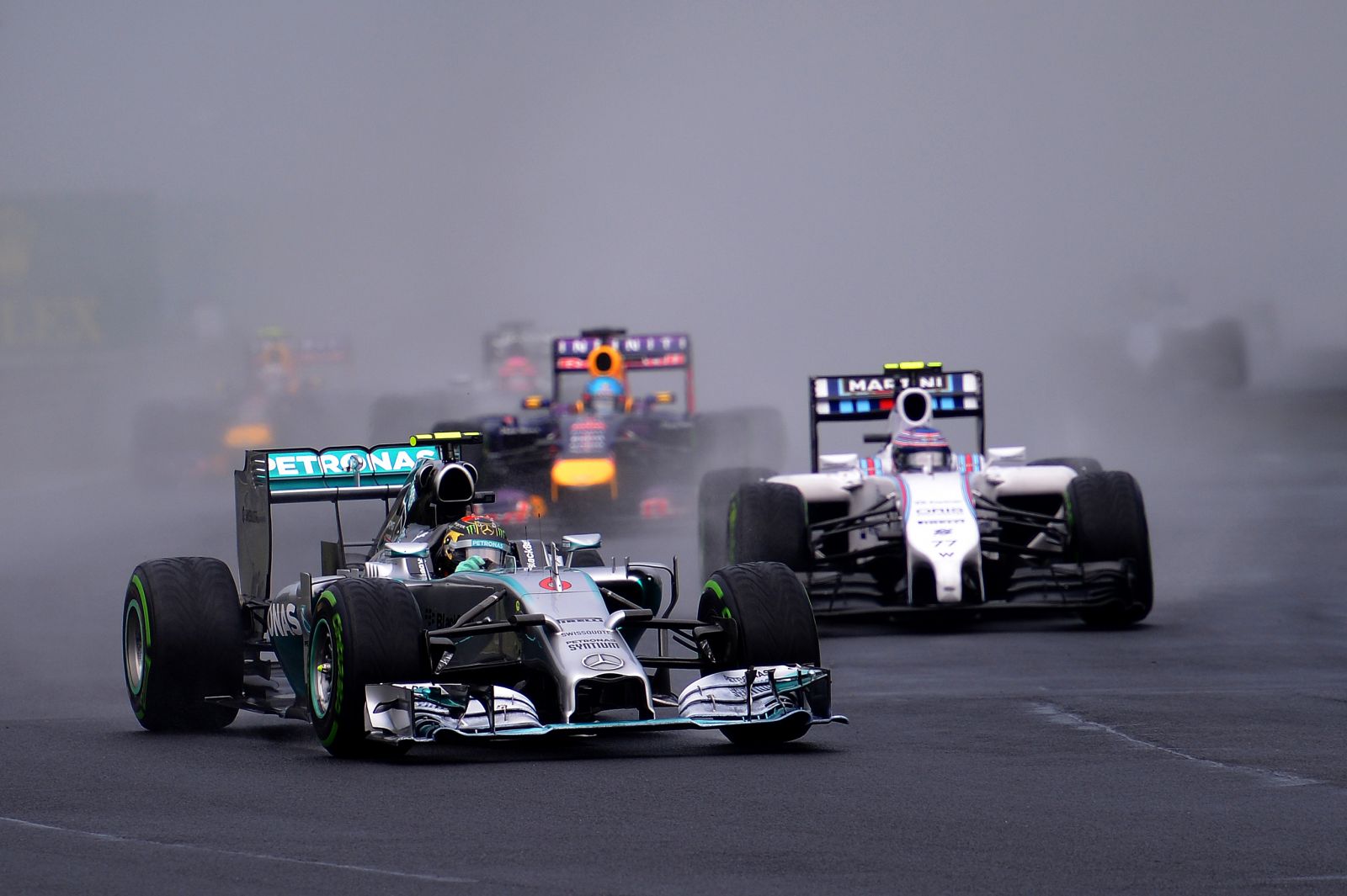 За сорок п’ять хвилин до старту над автодромом таки пішов дощ, про високу ймовірність якого всі знали ще за кілька днів. Мокрий асфальт Хунгарогингу став гарантією неймовірного видовища й інтриги в гонці, принаймні, попередні дві гонки за перемінної погоди відзначилися саме цим і тут уже час був звернути увагу на Дженсона Баттона, який як ніхто уміє приймати нестандартні, ризиковані й при цьому правильні рішення про час заїзду в бокси та гуму, яку треба поставити.