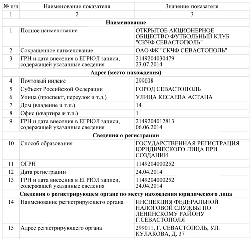 По запросу «ОТКРЫТОЕ АКЦИОНЕРНОЕ ОБЩЕСТВО ФУТБОЛЬНЫЙ КЛУБ "СКЧФ СЕВАСТОПОЛЬ"»: