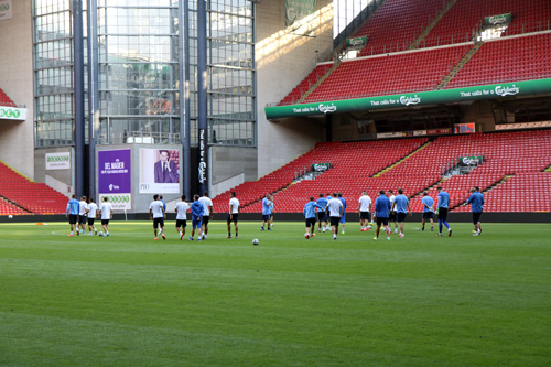 Днепропетровский «Днепр» опробовал газон на стадионе «Паркен» накануне встречи с «Копенгагеном» в рамках ответного поединка третьего квалификационного раунда Лиги чемпионов.