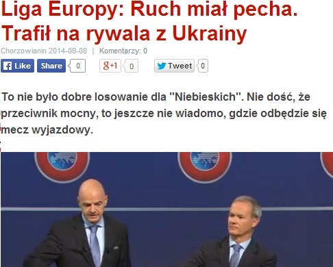 Заголовок новости на сайте chorzowianin.pl сразу бросается в глаза. «Руху» не повезло. Попал на соперника из Украины».