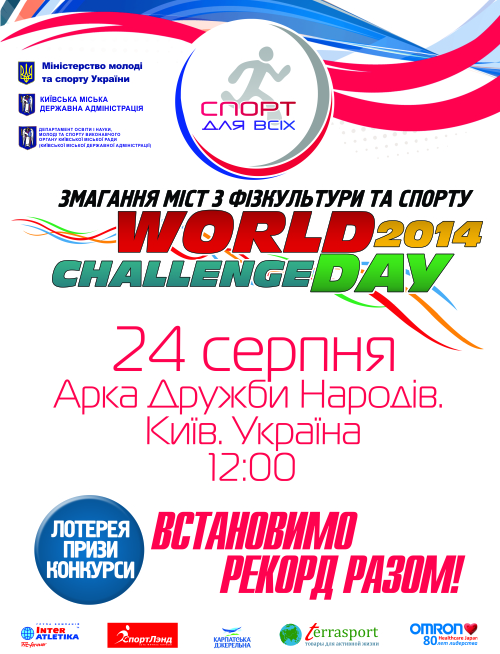 24 серпня 2014 року в Україні відбудеться чемпіонат світу зі стронгмену. Змагання відбуватимуться у Києві під аркою Дружби народів та проходитимуть в рамках міжнародного фестивалю TAFISA «World Challenge Day-2014», який організований Всеукраїнським центром «Спорт для всіх». Спортивно-масовий захід одночасно проходитиме по всій країні де працюють центри «Спорт для всіх».