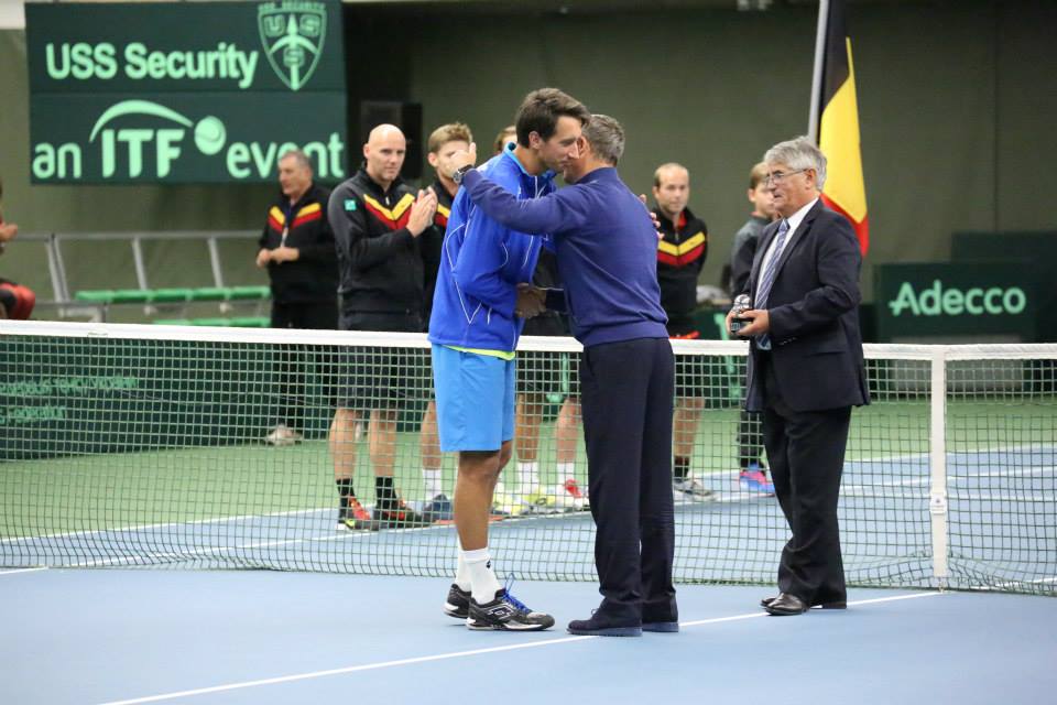 Перед началом парной встречи в рамках матча плэй-офф Мировой группы Кубка Дэвиса между сборными Украины и Бельгии состоялась торжественная церемония награждения лидера украинской команды Сергея Стаховского призом ITF за выдающийся вклад в развитие Кубка Дэвиса.
