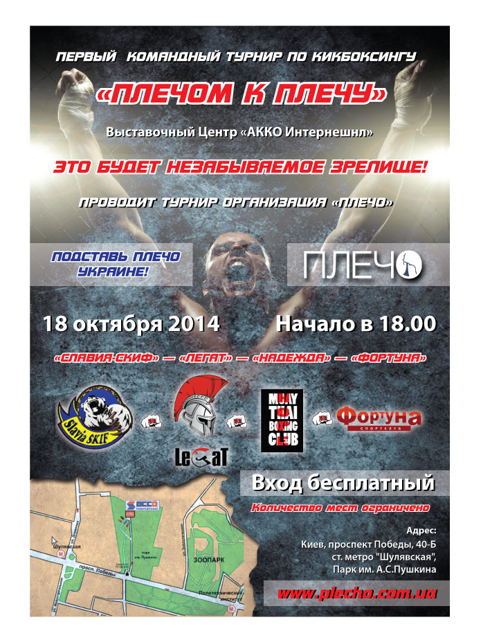 В субботу 18 октября, в 18:00, в помещении выставочного зала «АККО Интернешнл» по адресу ул. Победы 40-б, состоится первый шоу-турнир по кикбоксингу «Плечом к плечу».