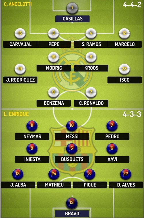 Что касается непосредственно «класико», который состоится уже сегодня, то на поле мы не увидим Гарета Бейла, который приступит к тренировкам только через неделю, после полученной в стане сборной Уэльса травмы; Коэнтрау и Хесе. Травмированный раннее Серхио Рамос приступил к тренировкам во вторник и скорее всего появится на поле в стартовом составе.