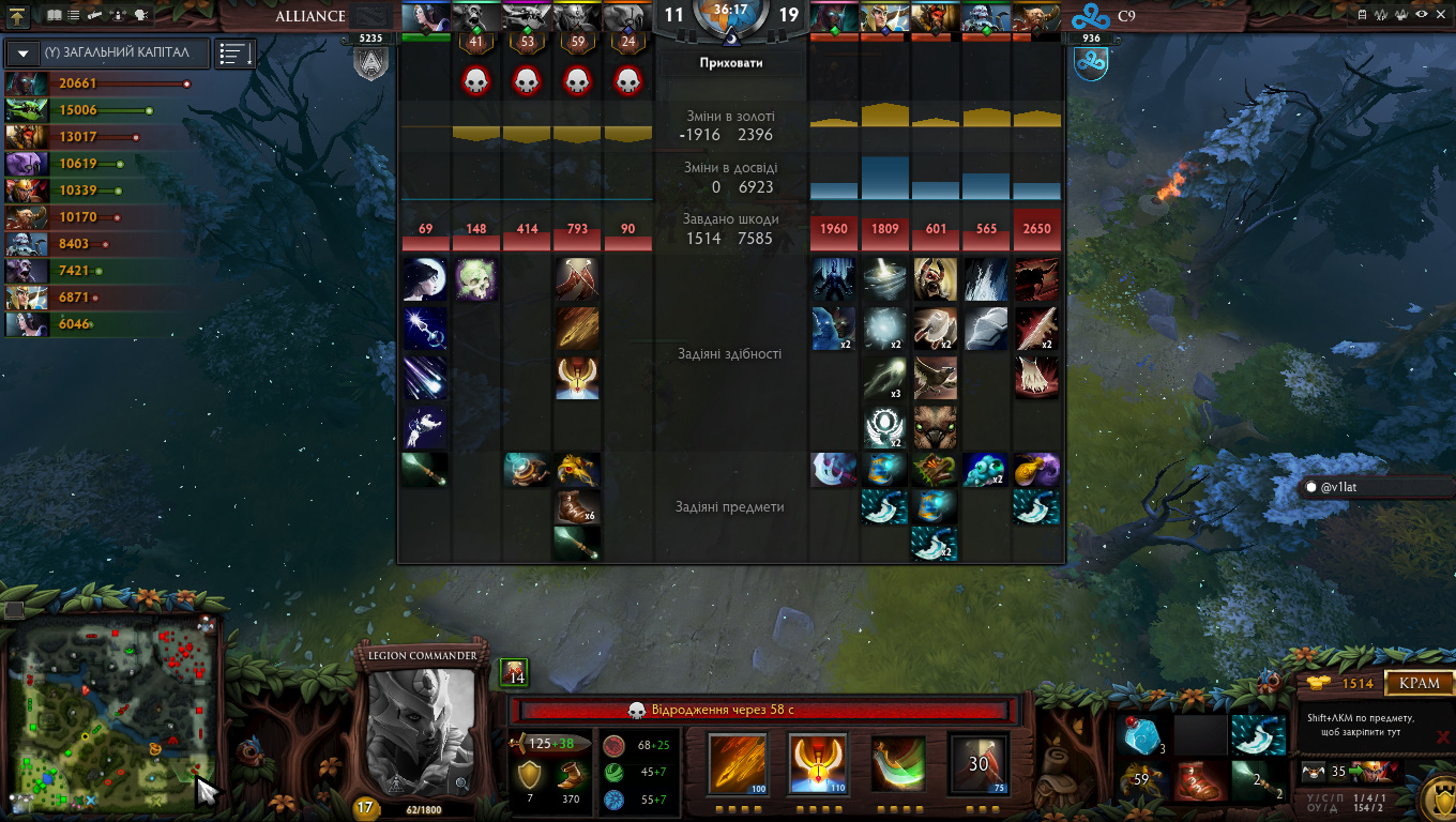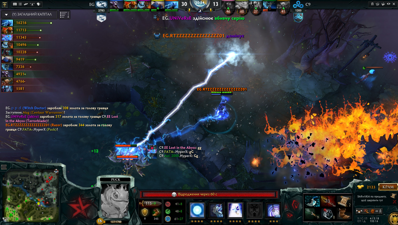 18:45 Решающая игра финала лузеров стартовала с массового фида от команды Cloud9!