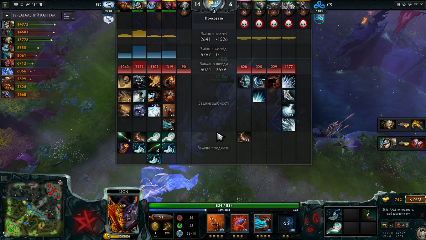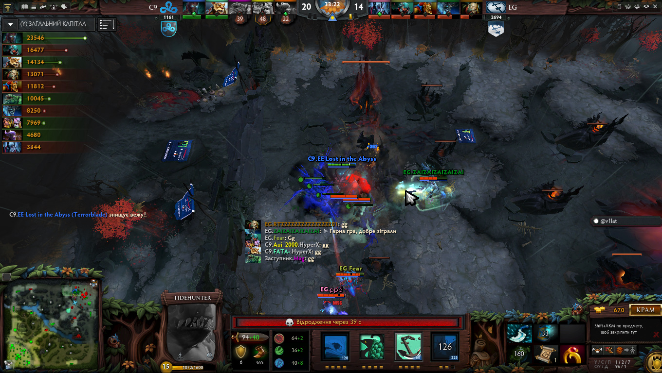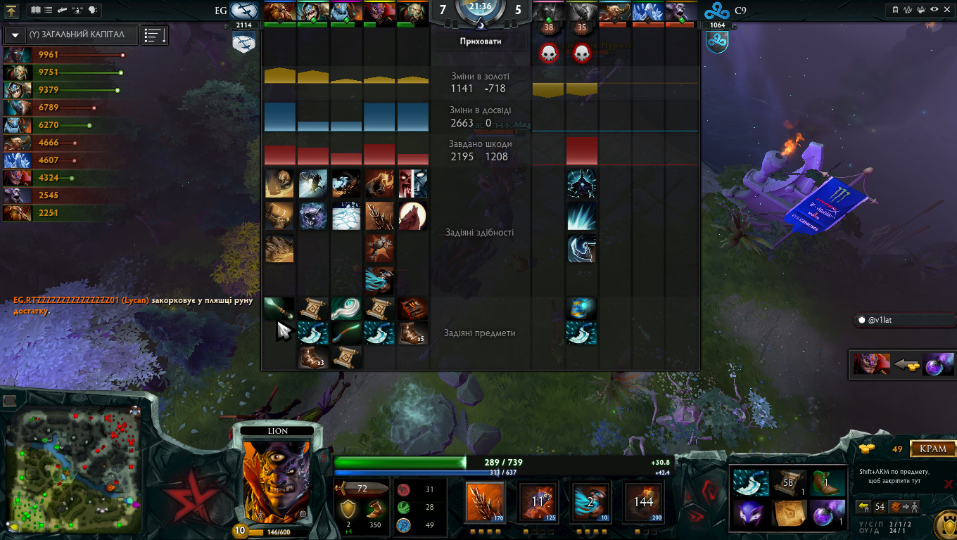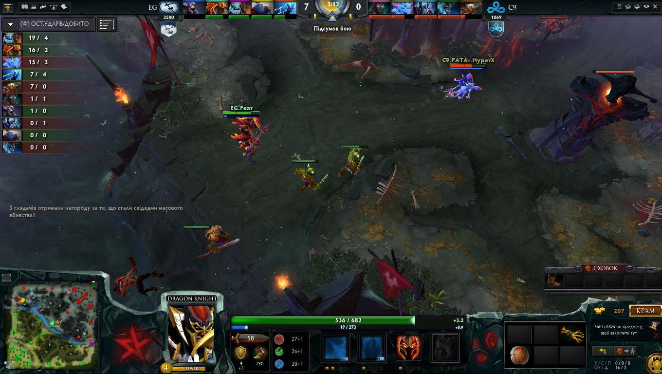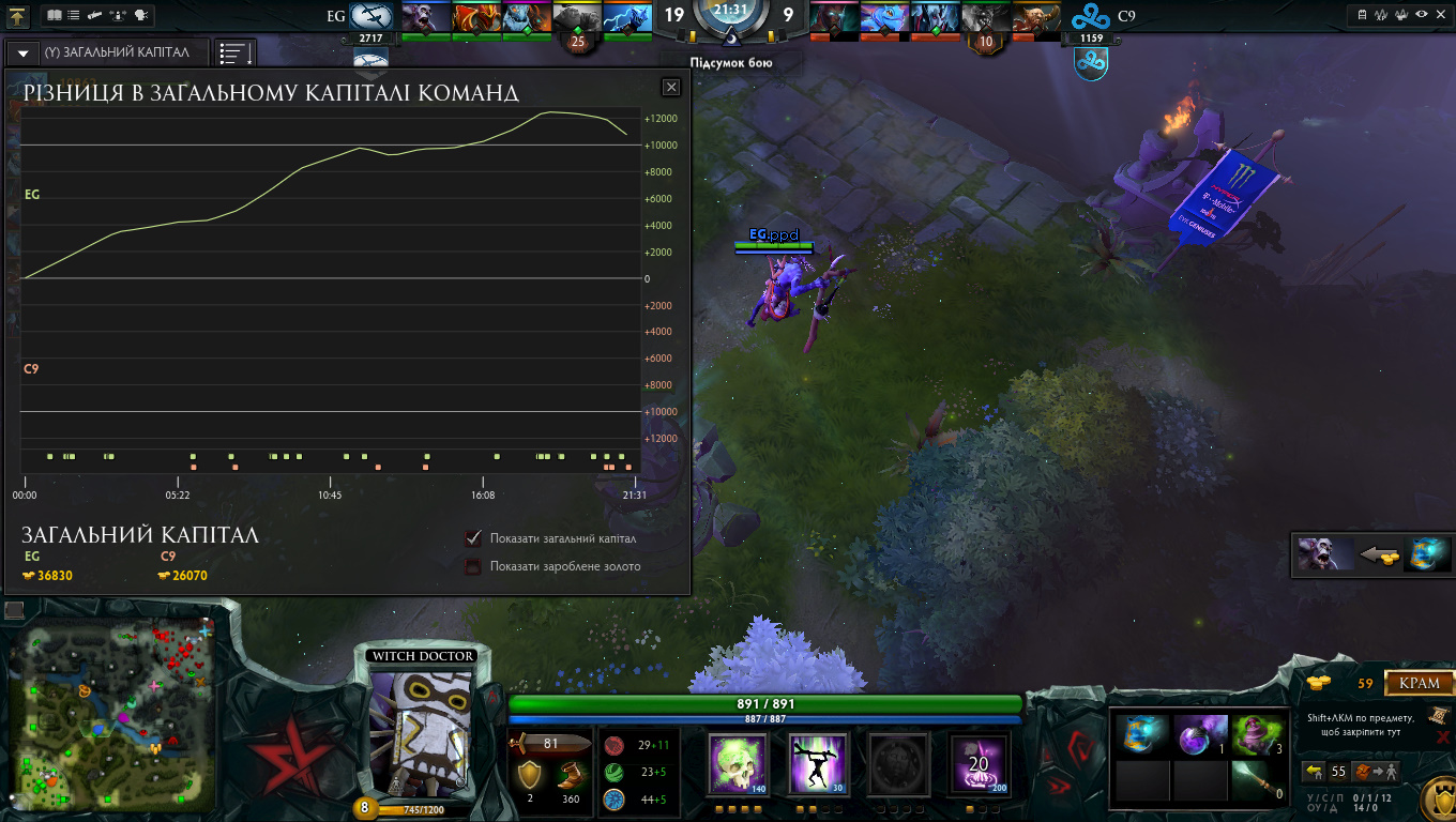 19:15 C9 сделали небольшой comeback после тактического фида в начале игры, но преимущество EG по золоту по-прежнему составляет 10 тысяч.