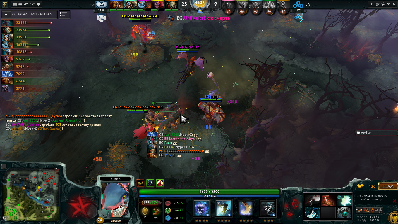 17:14 Тимвайп Cloud9, Ultra Kill от Fear на Slark'е!