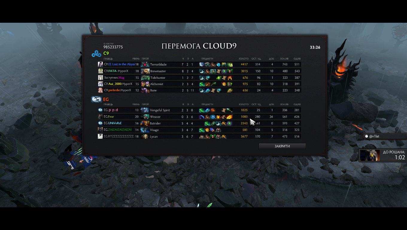 14:55 Alliance заходят на нижний хайграунд, убивают всех игроков C9 и завершают игру. Нас ждет третья решающая карта.