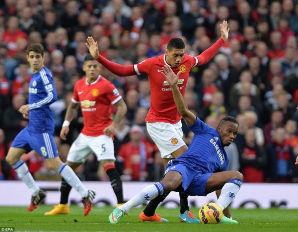Атакам «Челси» не хватало остроты. И ведь были хорошие кроссы с флангов, но великолепно действовала оборона «красных дьяволов». Однако одинаково слаженно отыграть весь тайм хозяевам не удалось. Перед самым перерывом команда Жозе Моуриньо едва не открыла счет. Отвратительную ошибку допустил Маркос Рохо, скинувший мяч головой на ход Оскару. Бразилец ворвался в штрафную и прострелил в центр на набежавшего Дрогба. Дидье пальнул в ближний угол, но отменную реакцию продемонстрировал Давид Де Хеа.
