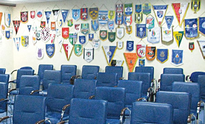 Одну из стен украшают вымпелы заграничных клубов, с которыми играли «желто-синие», а напротив — стена, увешанная футболками всех европейских соперников «Металлиста». Сам Таргонский признается, что уже сбился со счета, но уверен, что футболок уже точно более 30-ти. «Футболки команд, которые мы обыграли, символично висят вверх тормашками, остальные вешаю как положено, — рассказывает начальник «Металлиста». — Как правило, нам эти футболки дарят либо игроки соперников, либо кто-то из руководства».