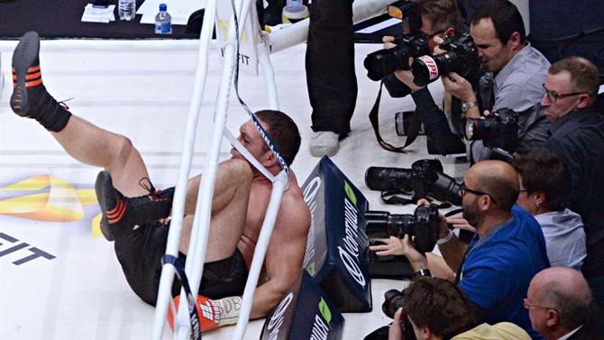 Претендент на титул после этого не отступил и навязал украинцу ожесточенную борьбу с взаимным обменом ударами.