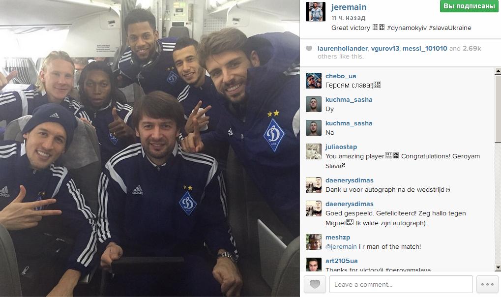 Полузащитник киевского «Динамо» Джермейн Ленс, который забил один из голов своей команды в ворота запорожского «Металлурга», уже после игры выложил на своей странице в Instagram фото из самолета команды, которое подписал: