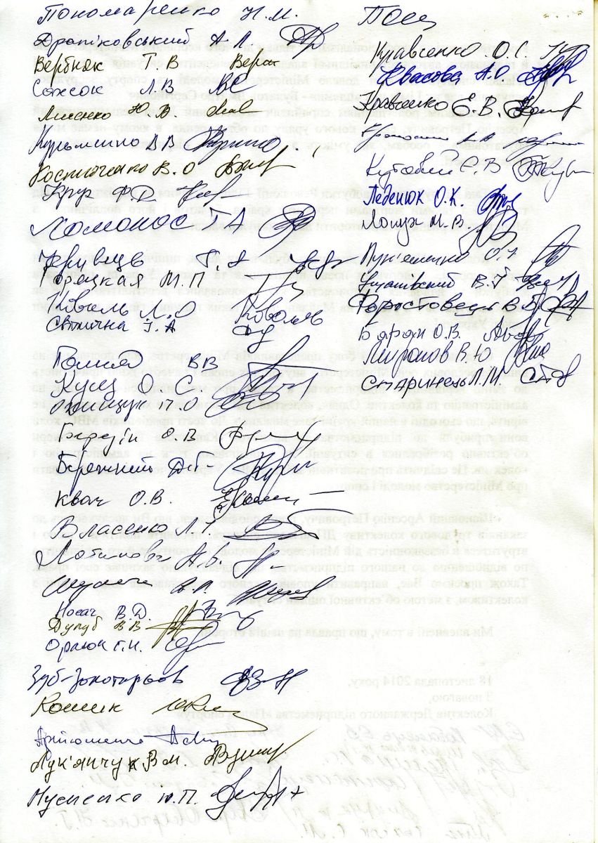 Свої підписи під Листом поставили 54 з 69 штатних працівників ДП "Палац спорту", що є більшістю. Інші працівники розділяють позицію більшості, але на момент підписання були відсутні на робочому місці з огляду на робочу зміну. Скан-копія листа додається.