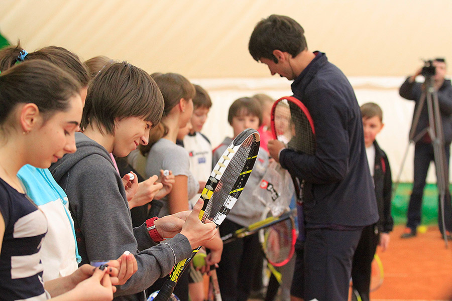 Сергей подарил юным теннистам 2 часа улыбок и позитивных эмоций - никто не ушел с корта без подарка и автографа.